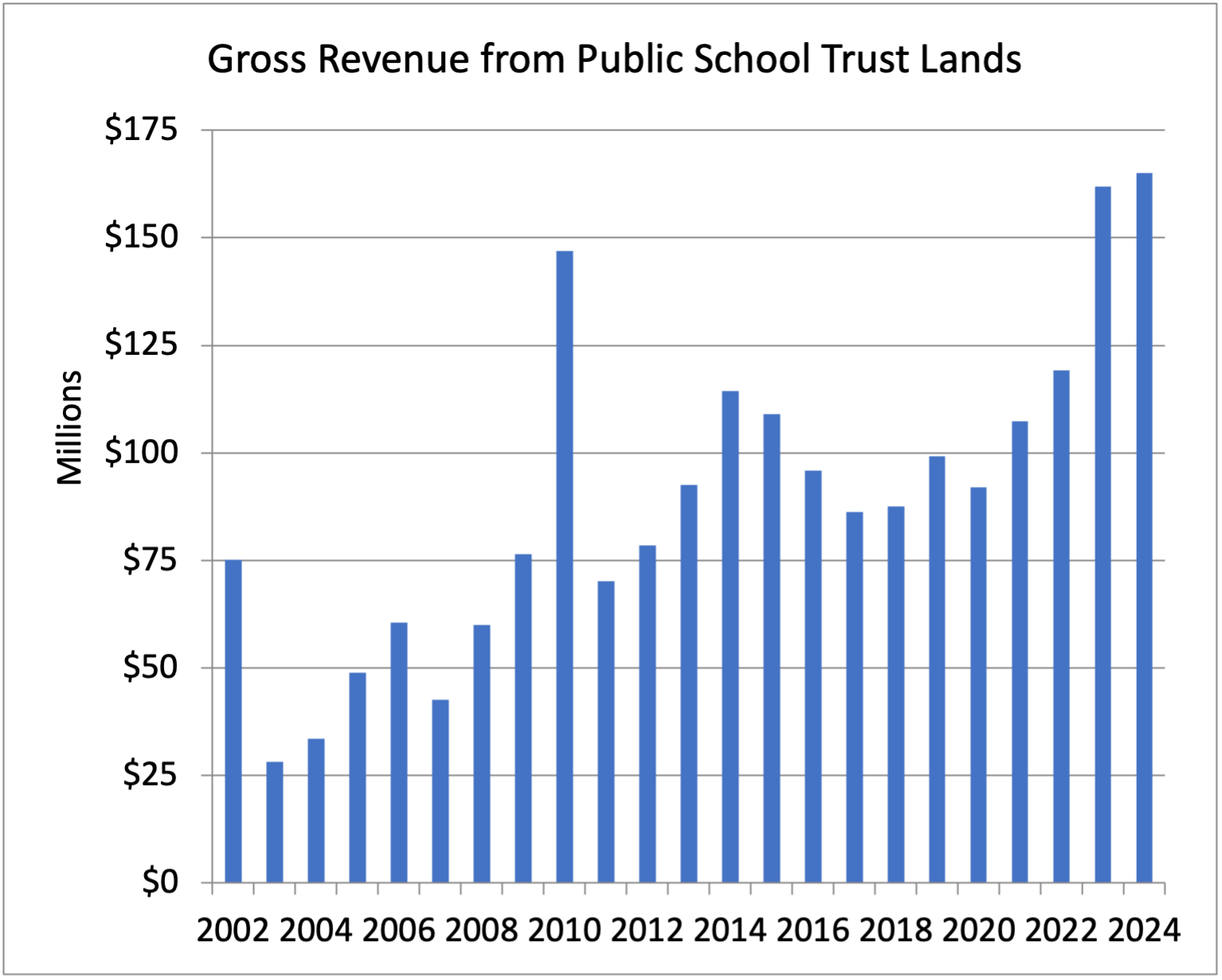 In FY2024 Montana state trust land revenue generated an historic distribution of more than $92 million if the $2 million to School Facility and Technology Fund and $31 million one-time payment from the Avista settlement are included with the distribution from the Investment Board.